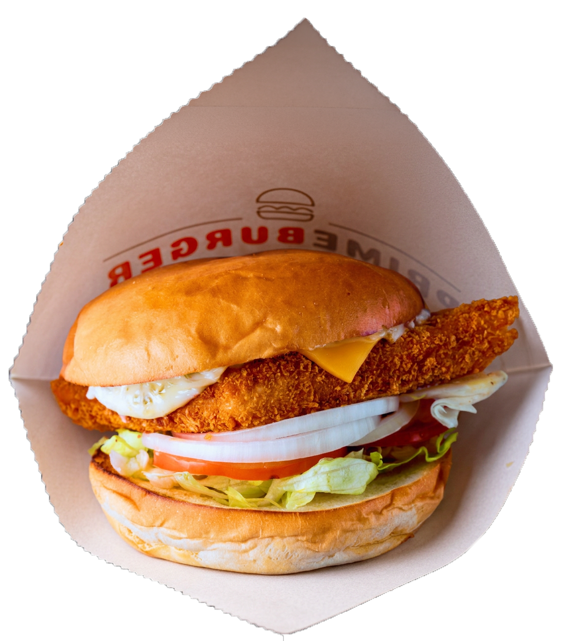 Crispy fried fish fillet with melted American cheese. Topped with fresh tomato, onion, and finished with classic tartar sauce.