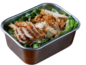 Chicken, Romaine lettuce, Bacon, Parmesan Cheese, Croutons and Caesar Salad Dressing