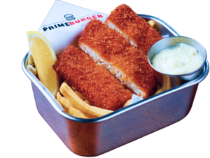 Crispy, battered fish paired with fries. Served with a side of tartar sauce for dipping.