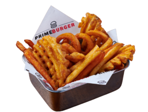 A mix of Waffle, Curly and Regular French Fries