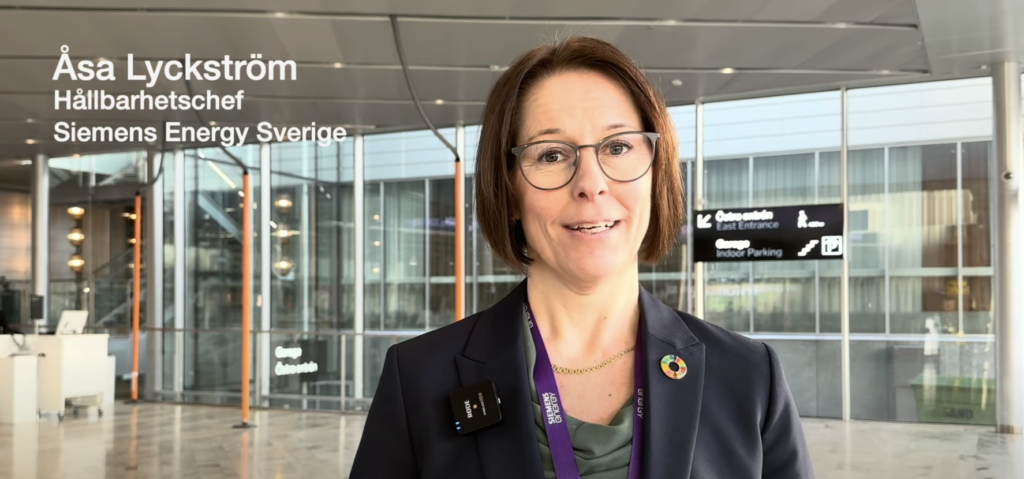 Åsa Lyckström är hållbarhetschef på Siemens Energy Sverige, där hon arbetar med att driva den gröna omställningen framåt. Hennes jobb handlar om att hjälpa kunder att minska sina utsläpp genom att implementera hållbara lösningar och energieffektiva teknologier.